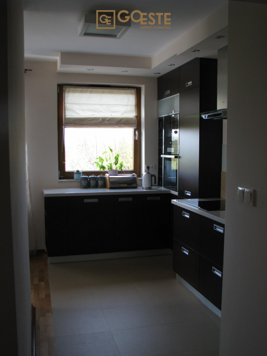 Salon z jadalnią, z wyjściem na taras, oddzielony od kuchni ścianką działową. W kuchni sprzęt AGD w zabudowie (lodówka, płyta indukcyjna, piekarnik, mikrofalówka, zmywarka, okap)