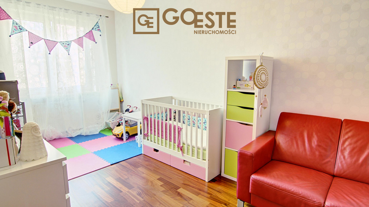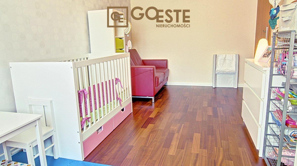 Mieszkanie jest położone na zamkniętym, rodzinnym osiedlu, zbudowanym przez Dom Development - jednego z najsolidniejszych deweloperów. Całe osiedle jest pełne zieleni i stworzone dla rodzin z dziećmi. Znajdziemy tu aż trzy place zabaw dla dzieci. Mieszkańcy mogą również bez ograniczeń korzystać z dwóch kortów tenisowych oraz boiska do koszykówki.