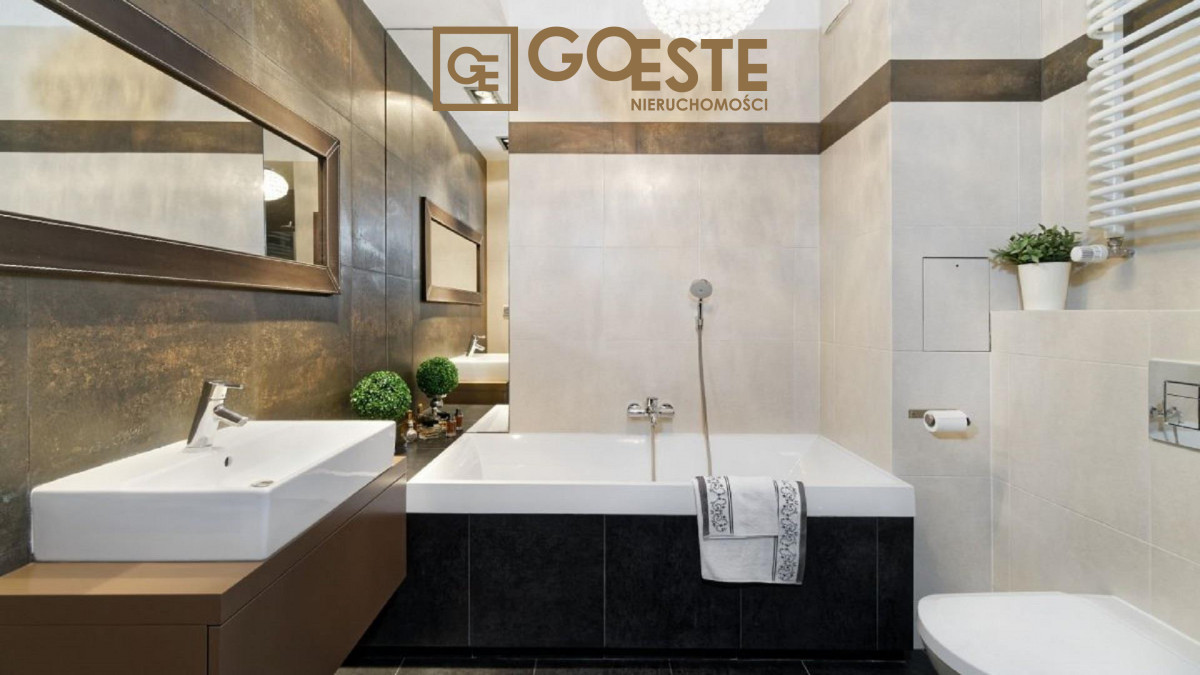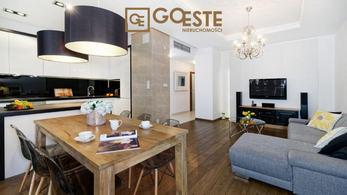 Bardzo dobra jakość wykończenia. Odświeżone w sierpniu 2017 roku. Nowa zabudowa kuchenna. Duże drewniane okna zapewniają rewelacyjne doświetlenie. W przedpokoju dwa zestawy szaf. W każdej sypialni również znajdują się szafy w zabudowie. Przy sypialniach przestronna łazienka w kolorach ziemi z wanną oraz prysznicem. W mniejszej szafa mieszcząca pralkę. W pokojach podłogi drewniane. W łazienkach, przedpokoju oraz kuchni gres. W wyposażeniu klimatyzacja centralna. Na ścianach gładź gipsowa. Oświetlenie tradycyjne - kinkiety, plafony i żyrandole oraz ledy w salonie. Całe mieszkanie urządzone konsekwentnie w jasnych kolorach. Wrażenie przestrzeni wewnątrz apartamentu potęguje jego wysokość -2.95m. Mieszkanie dwustronne: wschodnio-zachodnie.