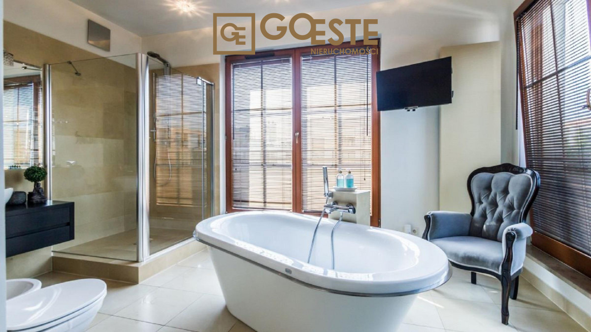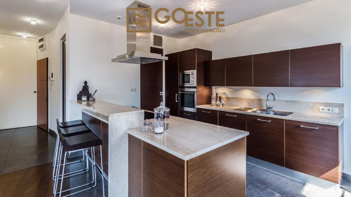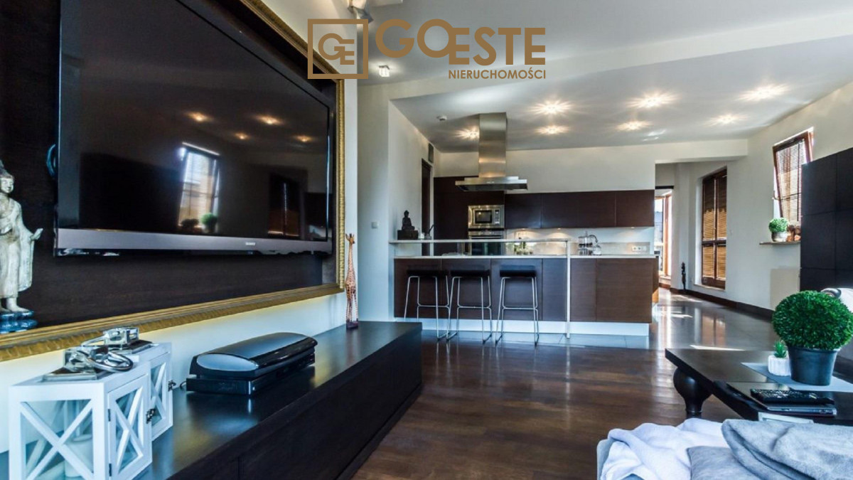 Całość zaprojektowana przez znaną pracownię architektoniczną. W holu wejściowym i całym mieszkaniu zaprojektowano dużą ilość szaf. Na podłodze parkiet egzotyczny, łazienki wykończone kamieniem. Wysokość pomieszczeń wynosi 3m zapewnia uczucie przestrzeni.