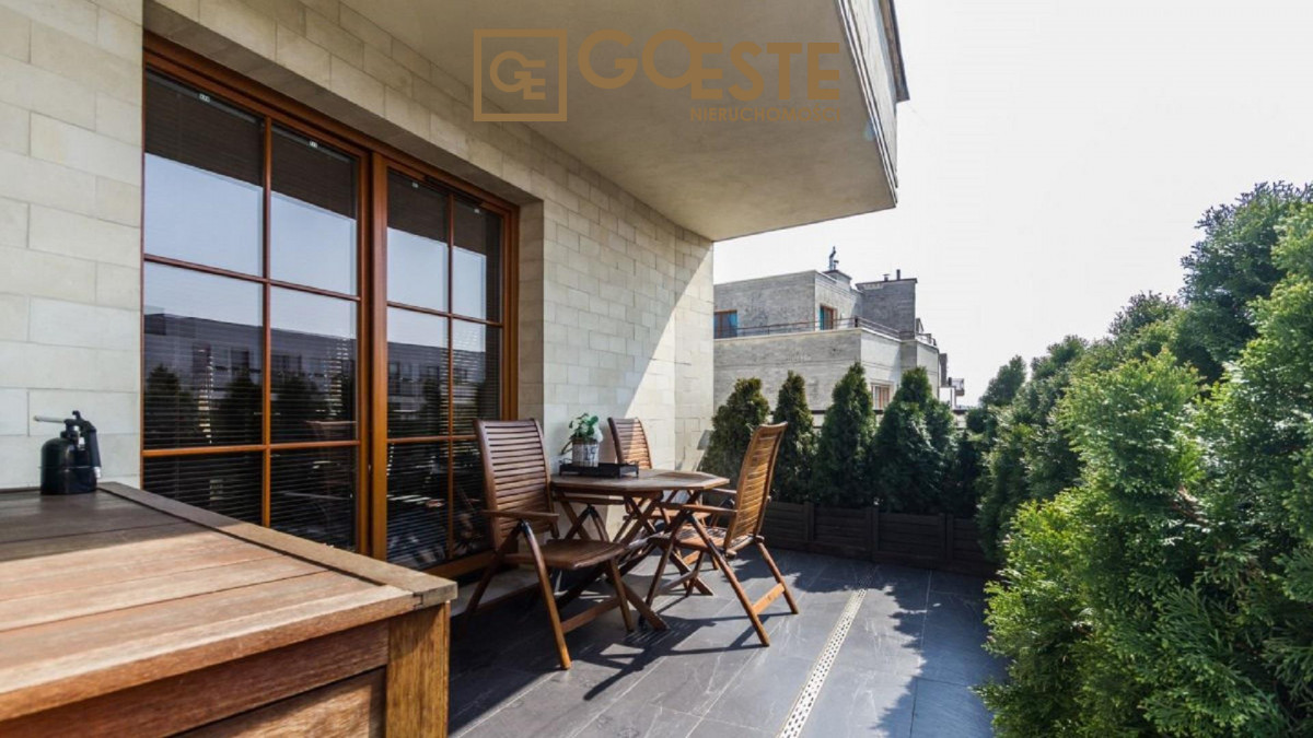 Apartament znajduje się w doskonałym punkcie. Jest to cicha i bezpieczna okolica z pięknie zadbanymi terenami zielonymi, szerokimi chodnikami z uroczymi latarniami. Miasteczko Wilanów jest miejscem, które ciągle jest rozwija. Na terenie samego osiedla znaleźć pełną infrastrukturę miejską: szeroka gama sklepów spożywczych, doskonałe restauracje i kawiarnie, wszelkiego rodzaju punkty usługowe, przychodnie lekarskie publiczne i prywatne. Znajduje się tu również wiele szkół i przedszkoli, w tym znane szkoły międzynarodowe. Jest to również doskonała lokalizacja dla aktywnych sportowo, okolica oferuje ścieżki rowerowe i biegowe, świetne siłownie, boiska oraz strefy placów zabaw i rozrywek dla dzieci. W bliskiej odległości znajduję się Muzeum Króla Jana III Sobieskiego w Wilanowie z Kompleksem Ogrodów Pałacowych.