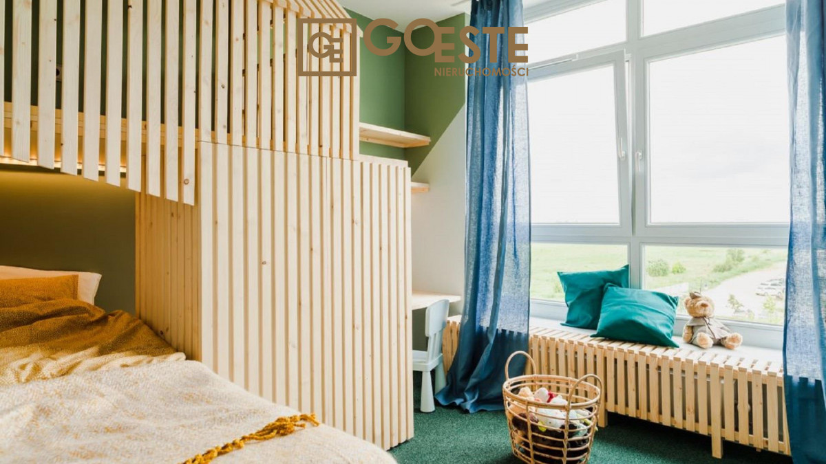 Wnętrze w stylu nowoczesnym i minimalistycznym. Przestronny salon z otwartą kuchnią (wyspa delikatnie oddzielająca kuchnię od salonu) o powierzchni około 50m2. Sypialnia o powierzchni 12m2 do której przylega własna łazienka z prysznicem o powierzchni 8m2. Pokój dla dziecka o powierzchni 11m2, urządzony w nietuzinkowym stylu, gdzie dziecko znajdzie miejsce do zabawy (łóżko w domku z drewna), jak i do nauki. Łazienka dla gości o powierzchni 5m2 z wanną. Z salonu można wyjść na taras o powierzchni 8m2 i odpocząć delektując się poranną kawą lub wieczorną lampką wina. Wszystkie materiały oraz meble topowych marek, bardzo wyszukane i starannie dobrane. Detale zadowolą najbardziej wymagających. Mieszkanie skierowane jest na wschód i południe.