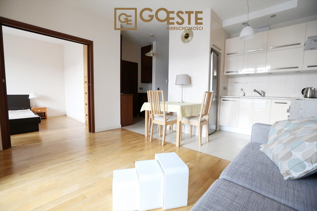 Do wynajęcia nowoczesne, jasne i funkcjonalne mieszkanie. Na 42 m2 znajdują się salon z aneksem kuchennym, sypialnia, łazienka z dużym prysznicem.