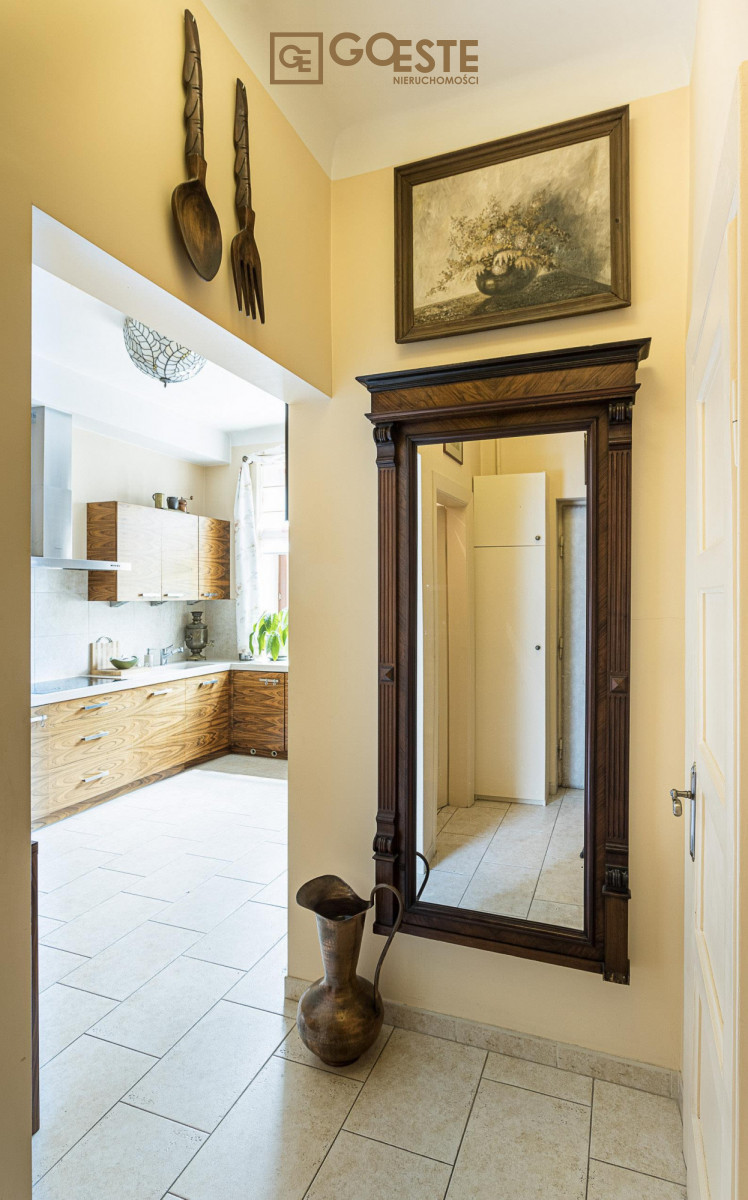 Wysokie ponad 3 m. mieszkanie z dużymi drewnianymi oknami. Sypialnia z zabudowanymi szafami oraz łazienką z wanną i prysznicem. Mieszkanie jest częściowo umeblowane. Wyposażone w klimatyzację. Na podłogach znajduje się parkiet. Kuchnia wyposażona.